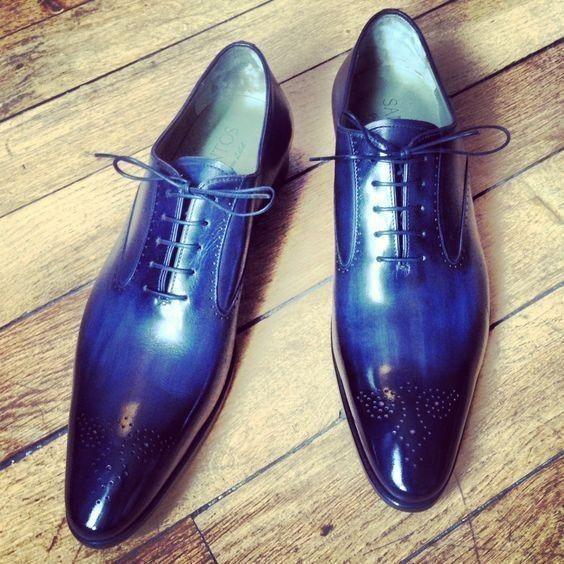 Stylish New Handmade Blue Slip On Lace Up Party Shoes , Men's Leather Shoes