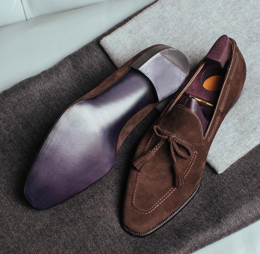 Men's Dark Brown Suede Loafer With Tasseled Formal Shoes