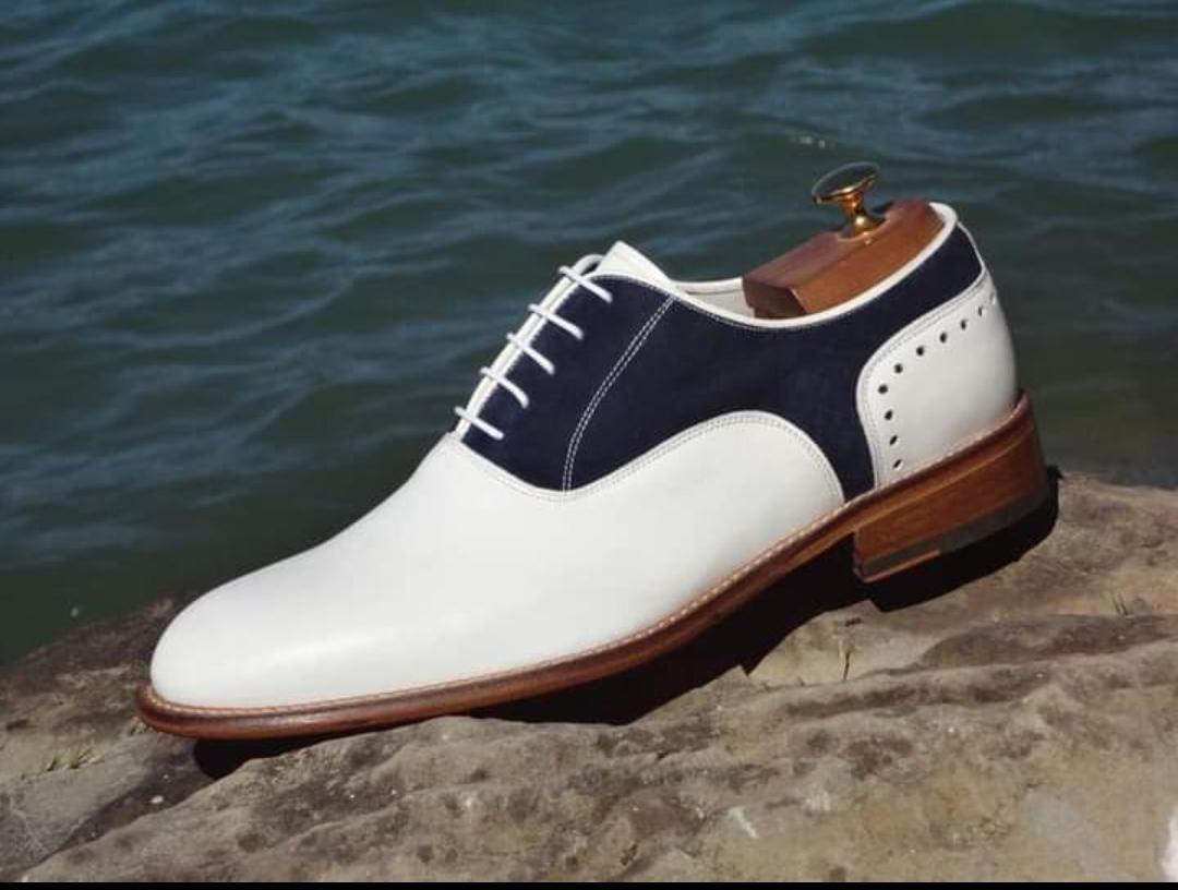 Two Tone Pure Leather Suede Slip On Lace Up Plain Toe Men's Shoes