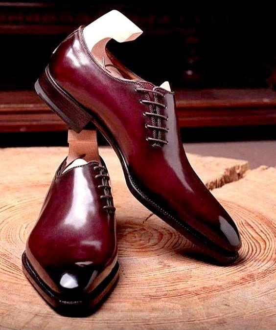 Pure Burgundy Side ;Lace Up Patent Leather Handmade Shoes