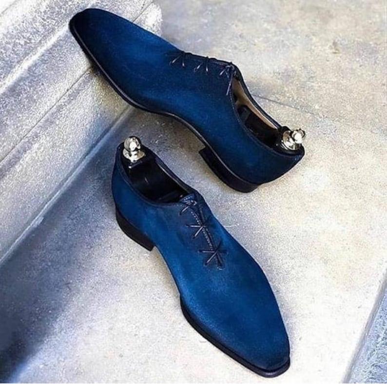 New Pure Handmade Blue Suede Leather Lace Up Shoes For Men's
