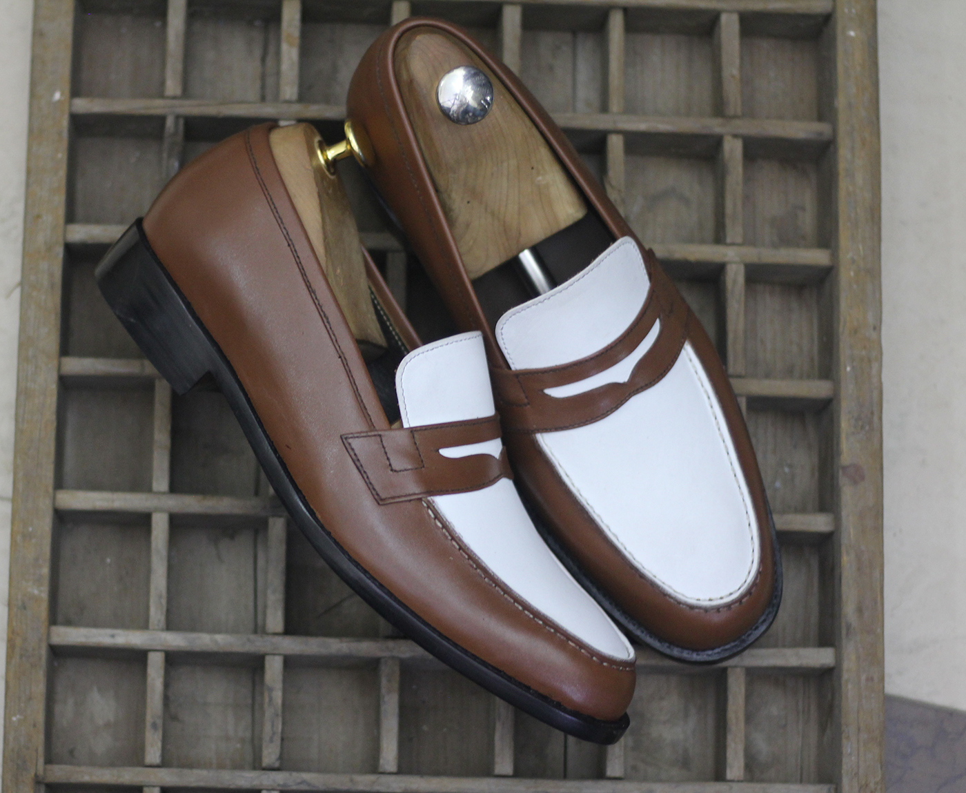 Handmade Men Two Tone Formal Shoes , Men Leather Spectator Shoes, Men's Leather Loafer Shoes