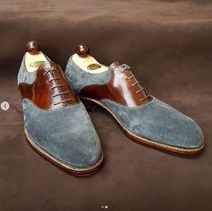 Handmade Leather Suede Brown & Gray Round Toe Lace Up Shoes