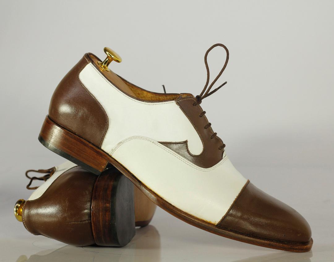 Two Tone Cap Toe Shoes, Leather Formal Shoes Dress Casual Shoes