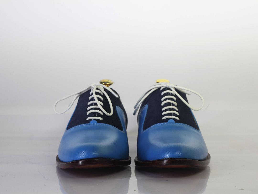 Handmade Blue & Navy Blue Lace Up Casual Leather Suede Shoes For Men's