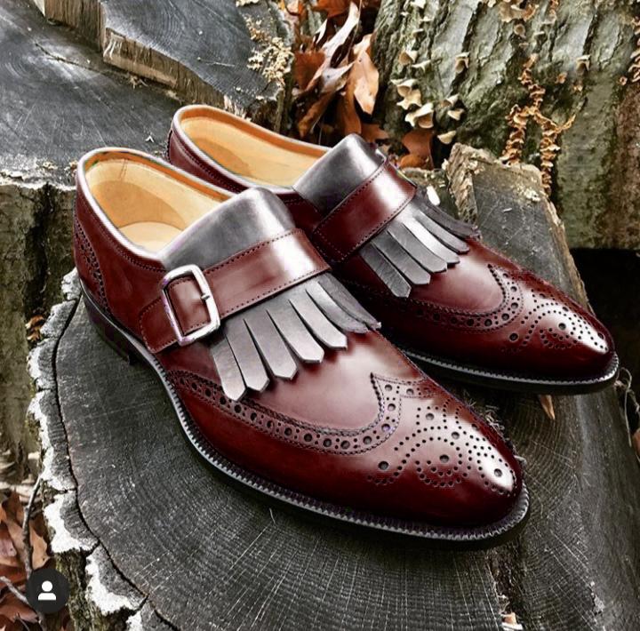Handmade Men's Monk Shoes, Men's Burgundy Gray Leather Wing Tip Monk Strap Casual Shoes