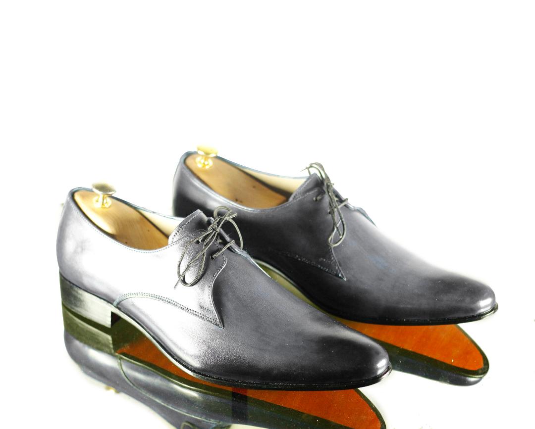 Bespoke Men's Gray Pointed Toe Shoes, Men's Lace Up Leather Oxford Shoes