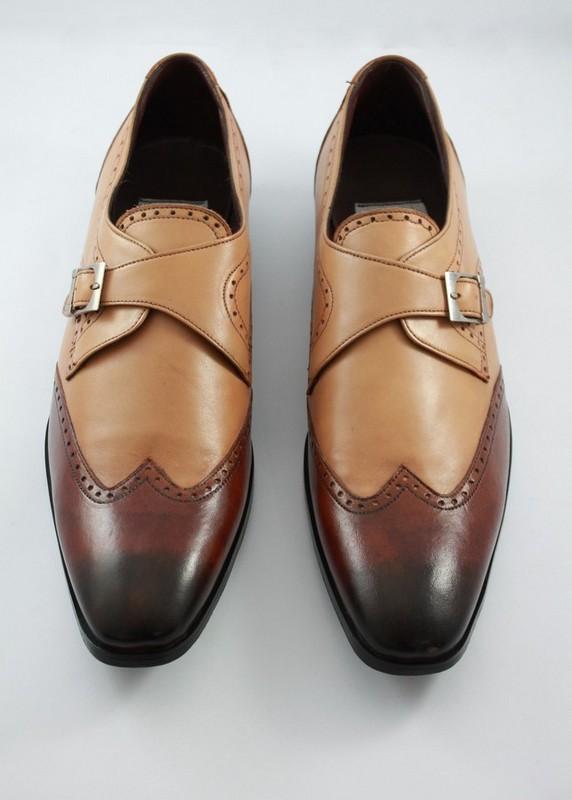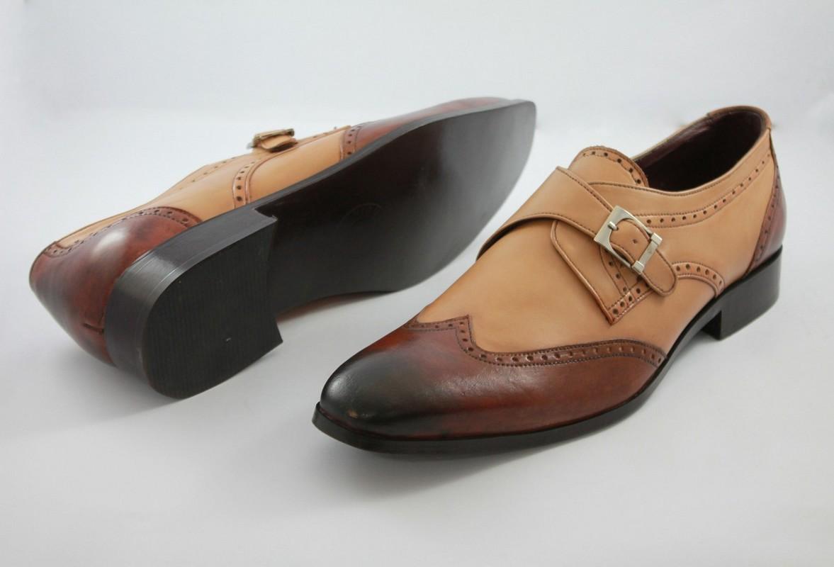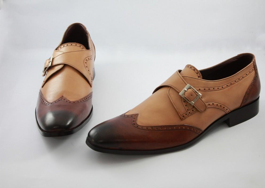 Handmade Two Tone Monk Style Shoes Tan Brown , Dress Formal Shoes