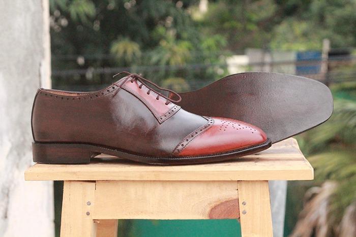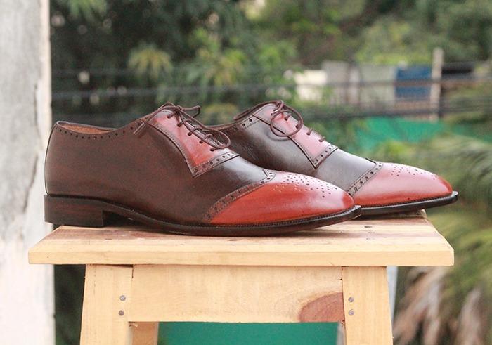 Men's Tan Brown Leather Oxford Handmade Lace Up Wing Tip Brogue Shoes