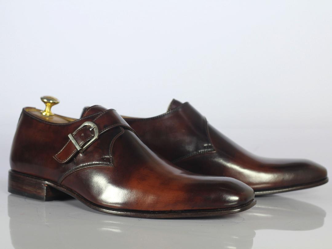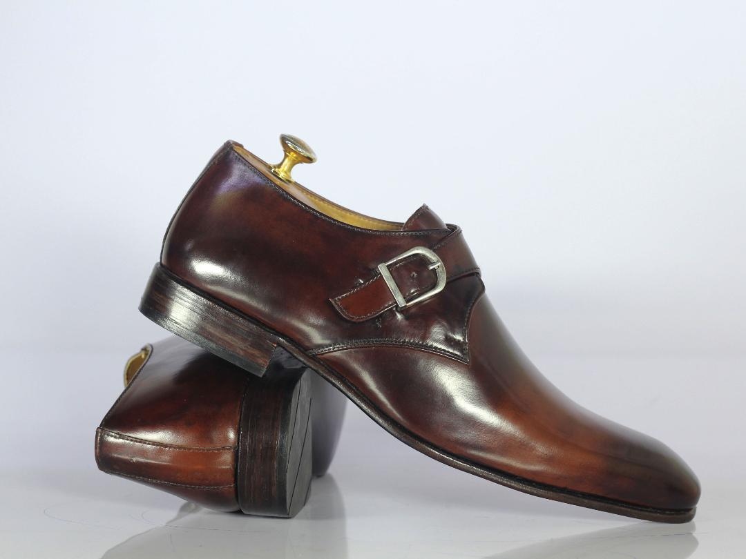 Men's Handcrafted Pure Brown Leather Shoes, Stylish Buckle Strap Shoes For Men's