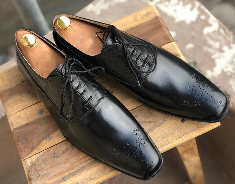Men's Handmade Stylish Black Brogue Pointed Toe Leather Lace Up Shoes For Men's