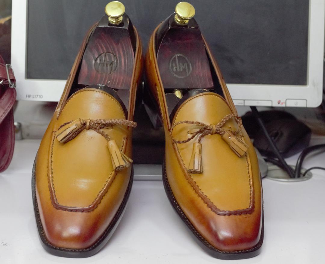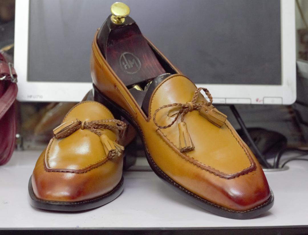 Handmade Pure Tan Leather Stylish Men's Loafer Tasseled Shoes