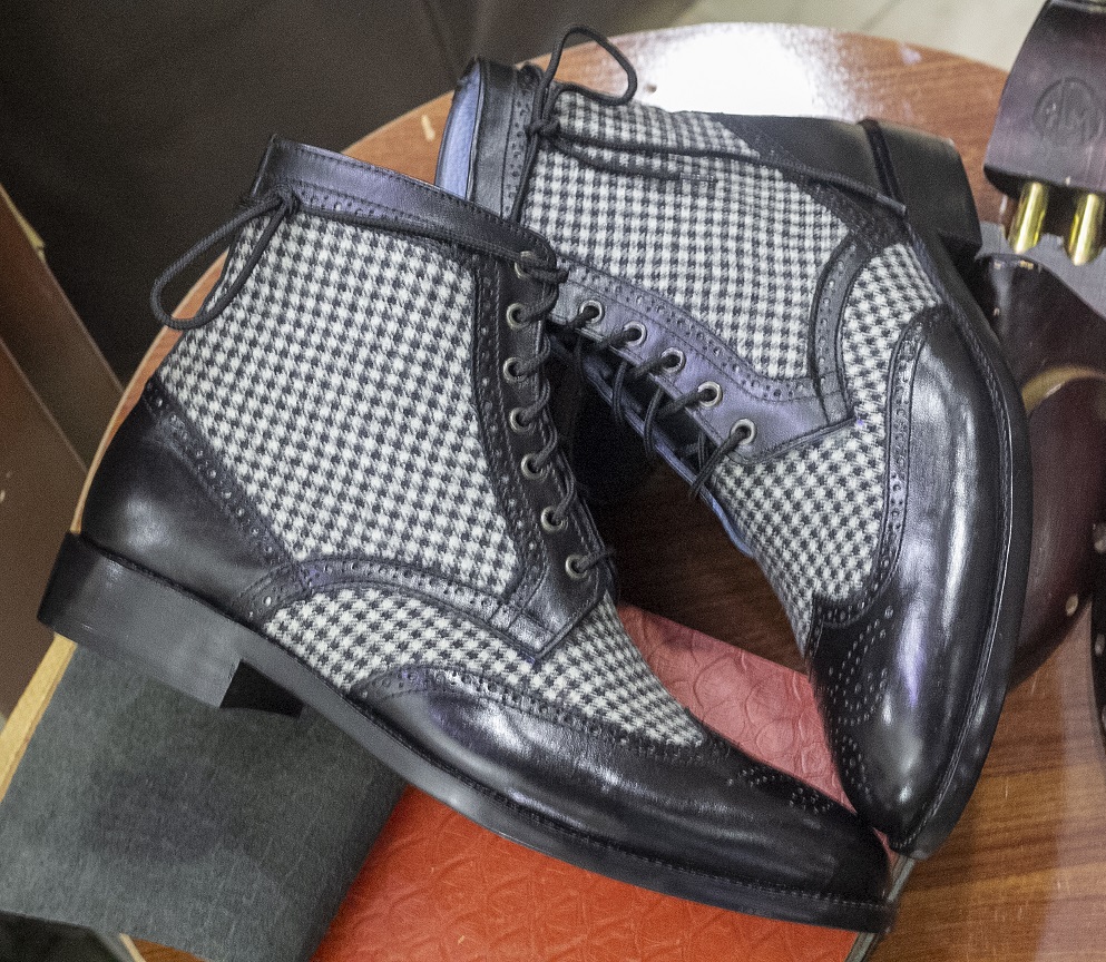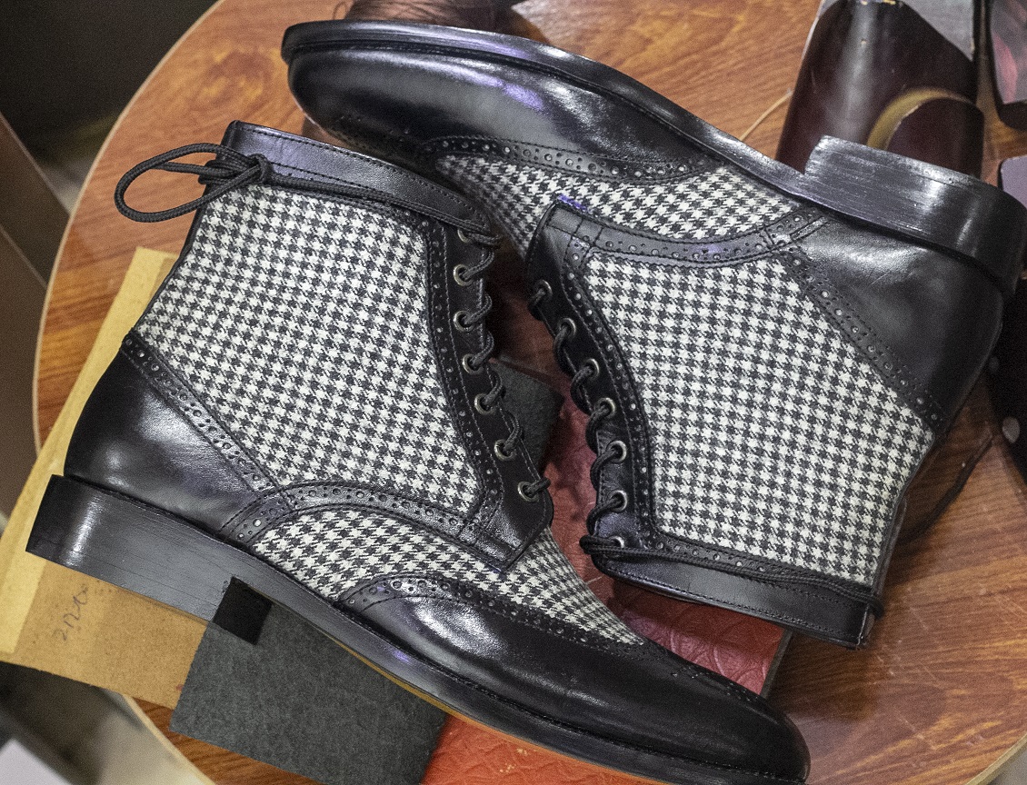 Men's Handmade Wing Tip Tweed & Leather Lace Up Boot