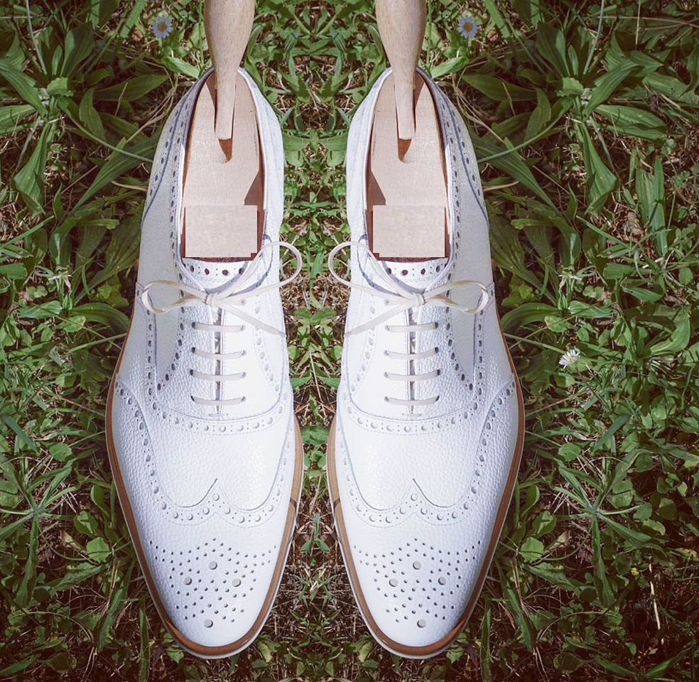Men's Pure White Oxford Wing Tip Lace uP Brogue Leather Shoes