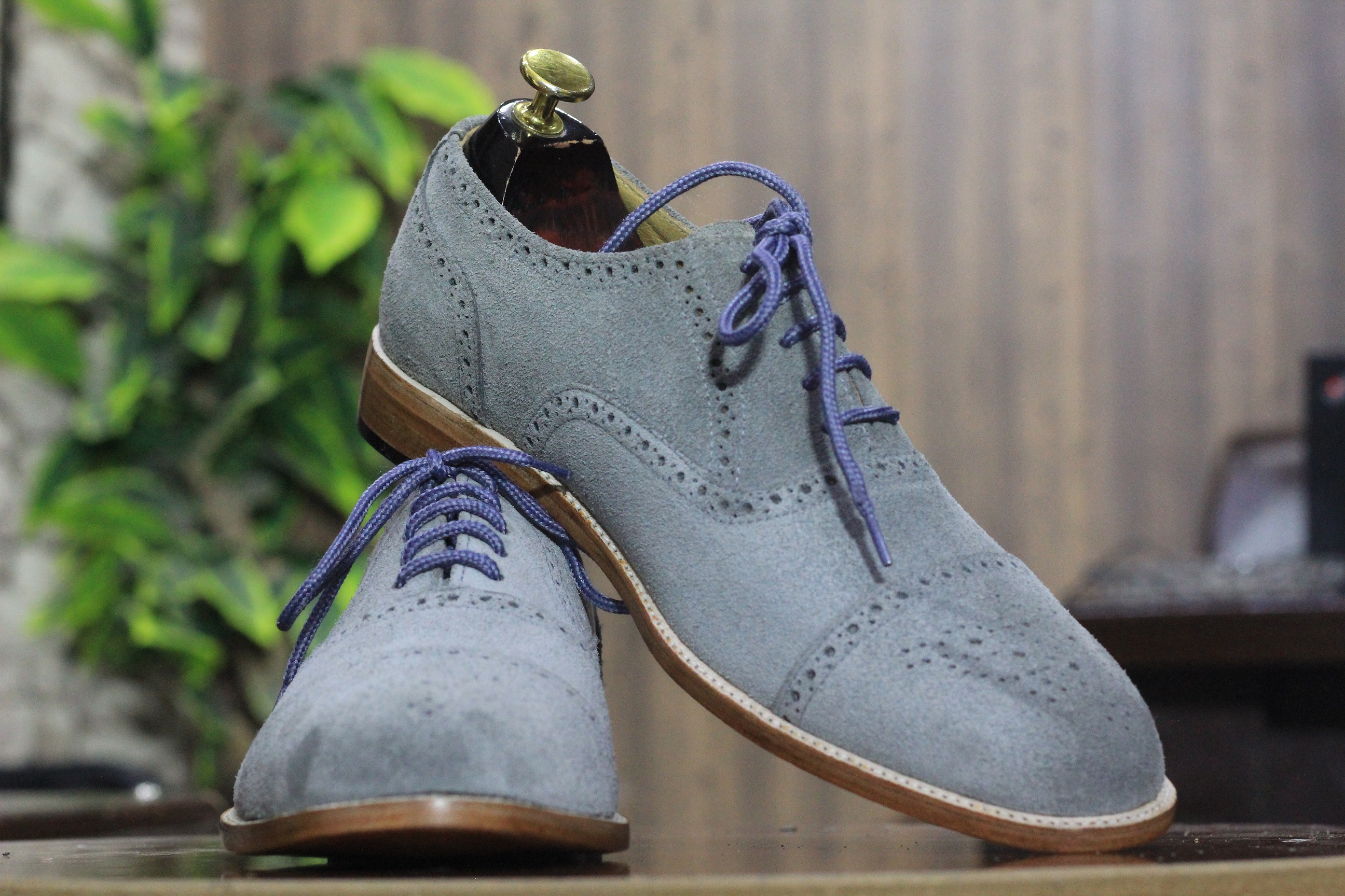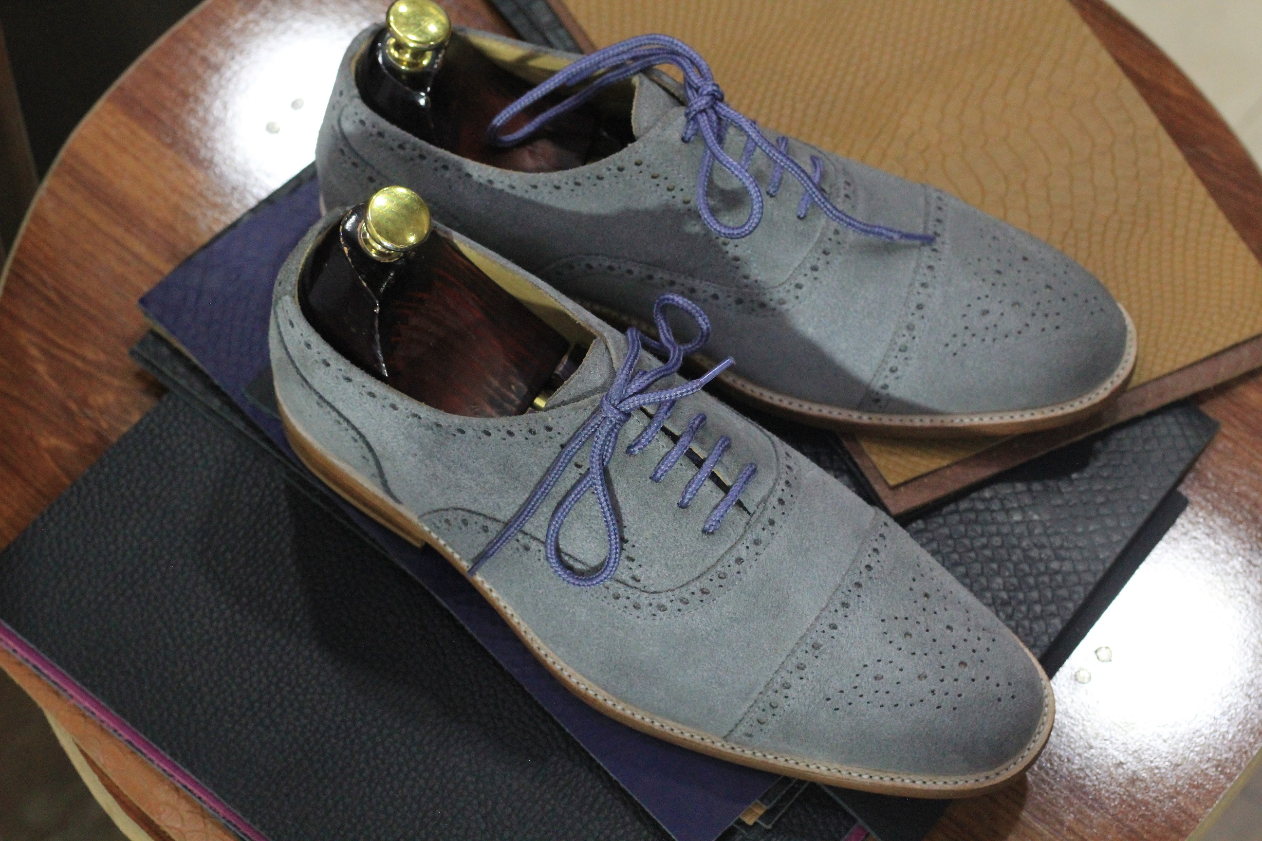 Handmade Gray Brogue Suede Leather Cap Toe Lace UP Shoes For Men