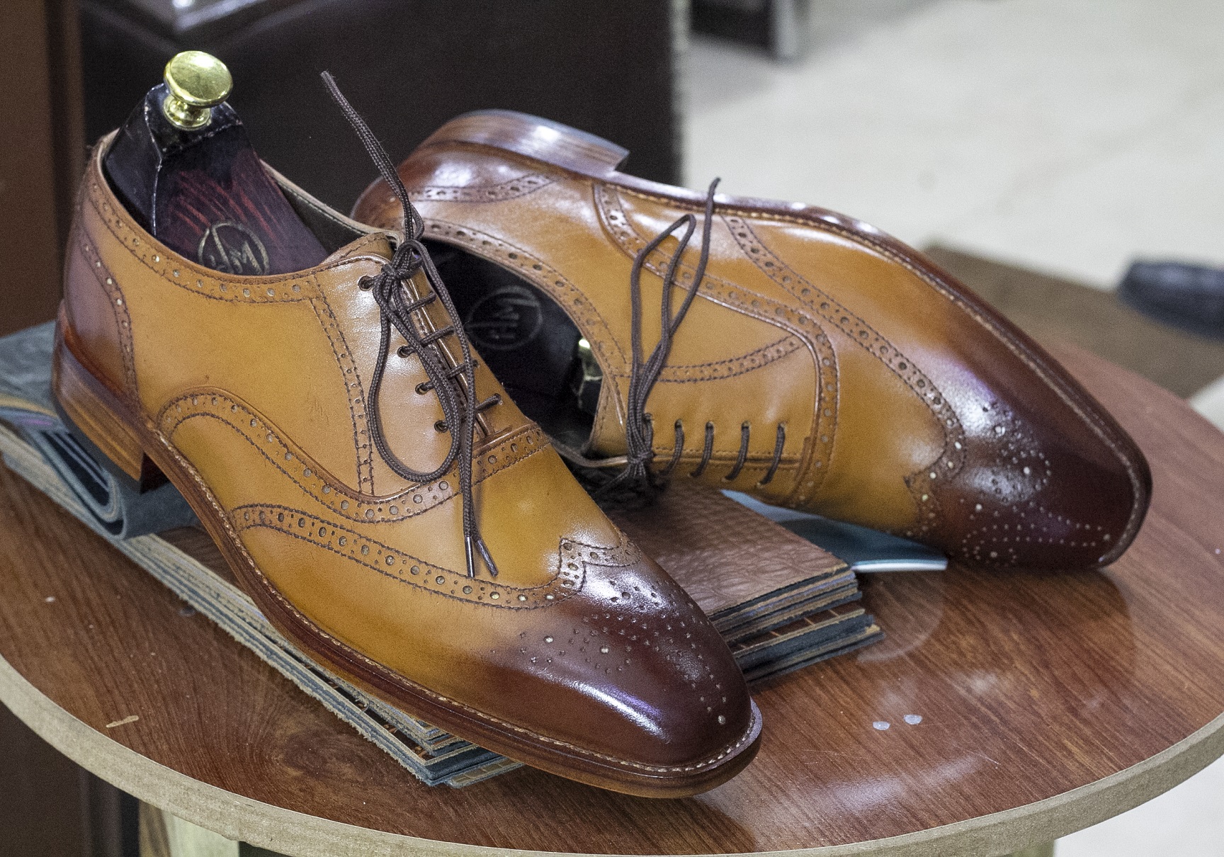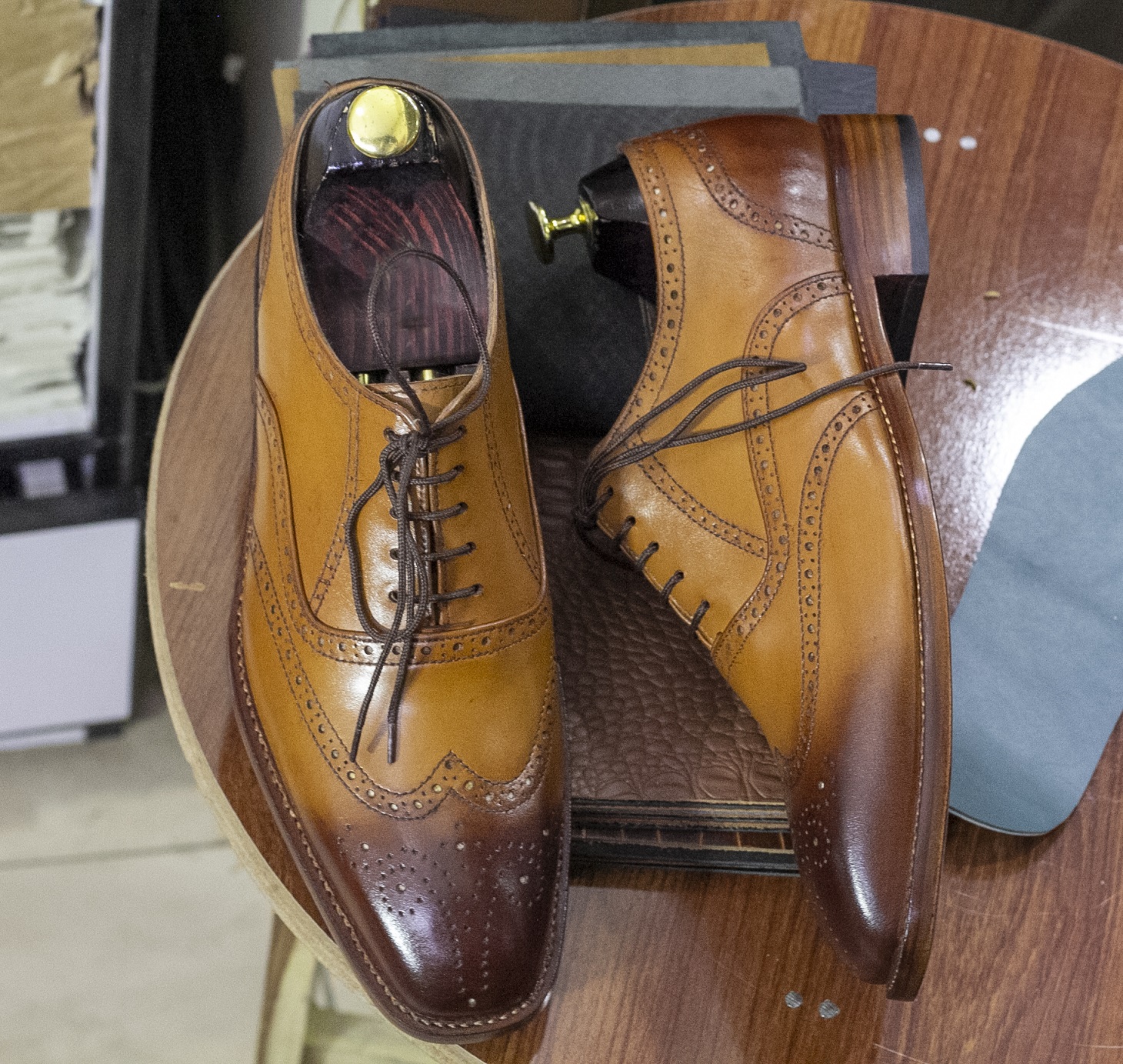 Hand Painted Two Tone Oxford Wing tip Lace UP Leather Shoes For Men
