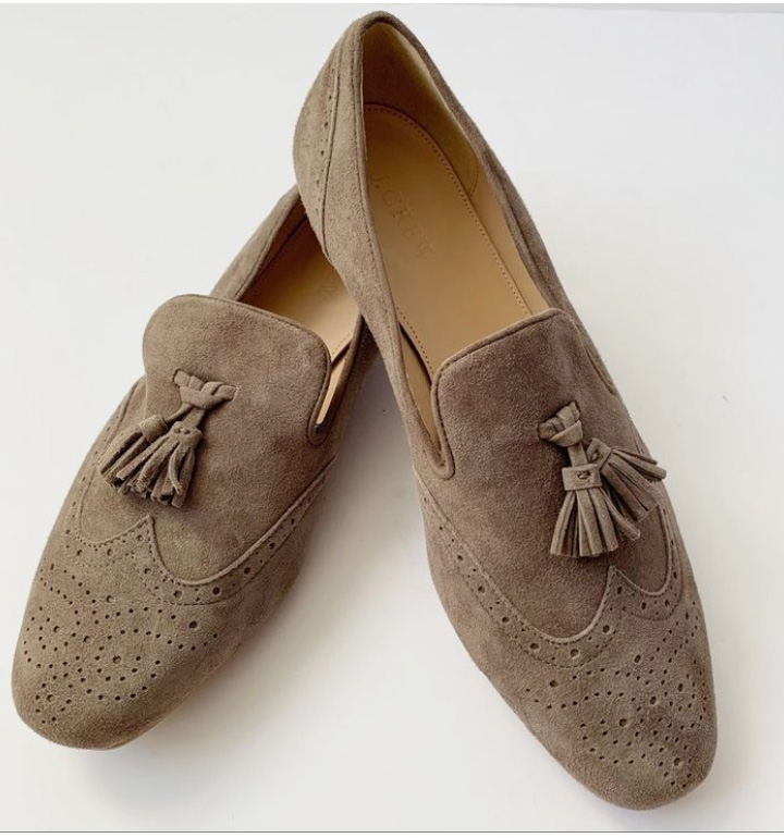 Handmade Wing Tip Brogue Leather Beige Suede Tasselled Slip On Loafer