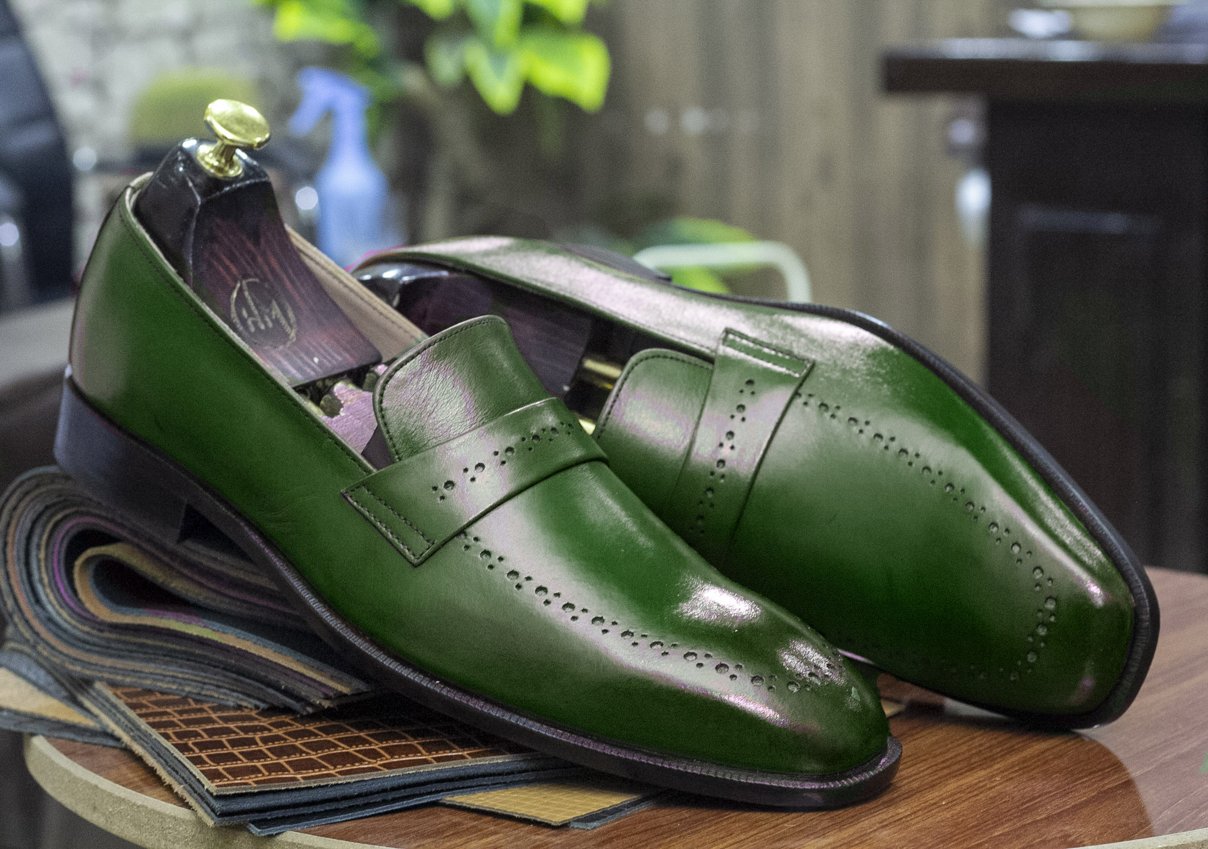 Men's Handmade Brogue Leather Slip On Penny Loafer, Dress Leather Shoes