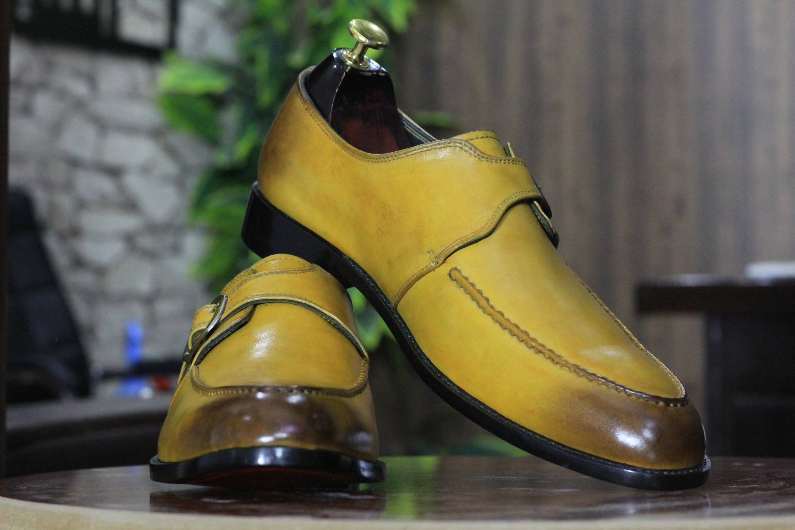 Two Shaded Color Genuine Hand painted Leather Single Buckle Loafer Men's Shoes