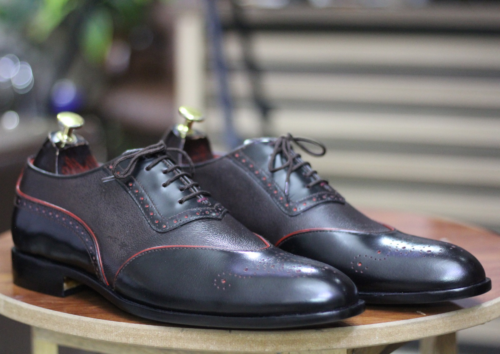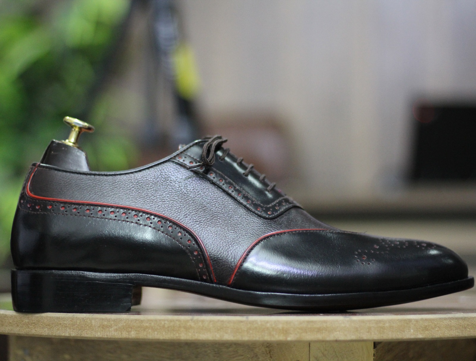 Black Color Brogue Toe Lace Up Style Pure Handmade Leather Men's Dress Shoes