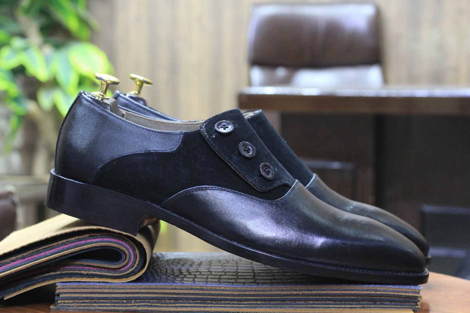Men's Bespoke Black Color Button Top Style Genuine Leather Suede Loafer Party Wear Shoes