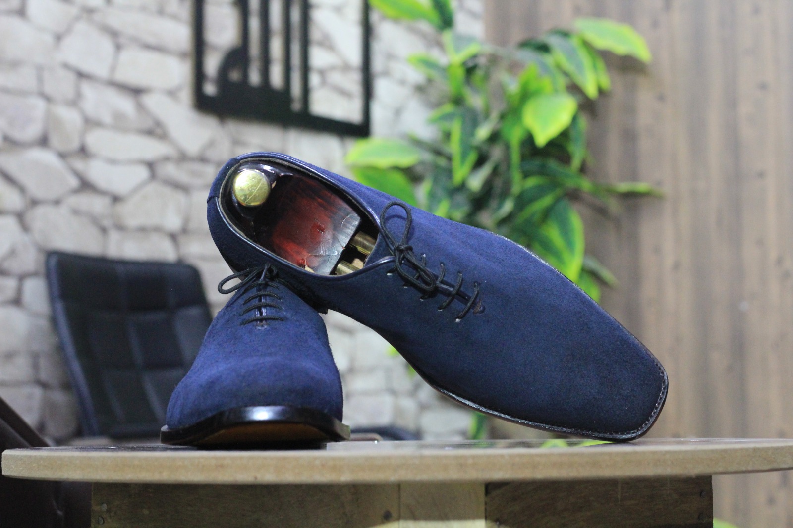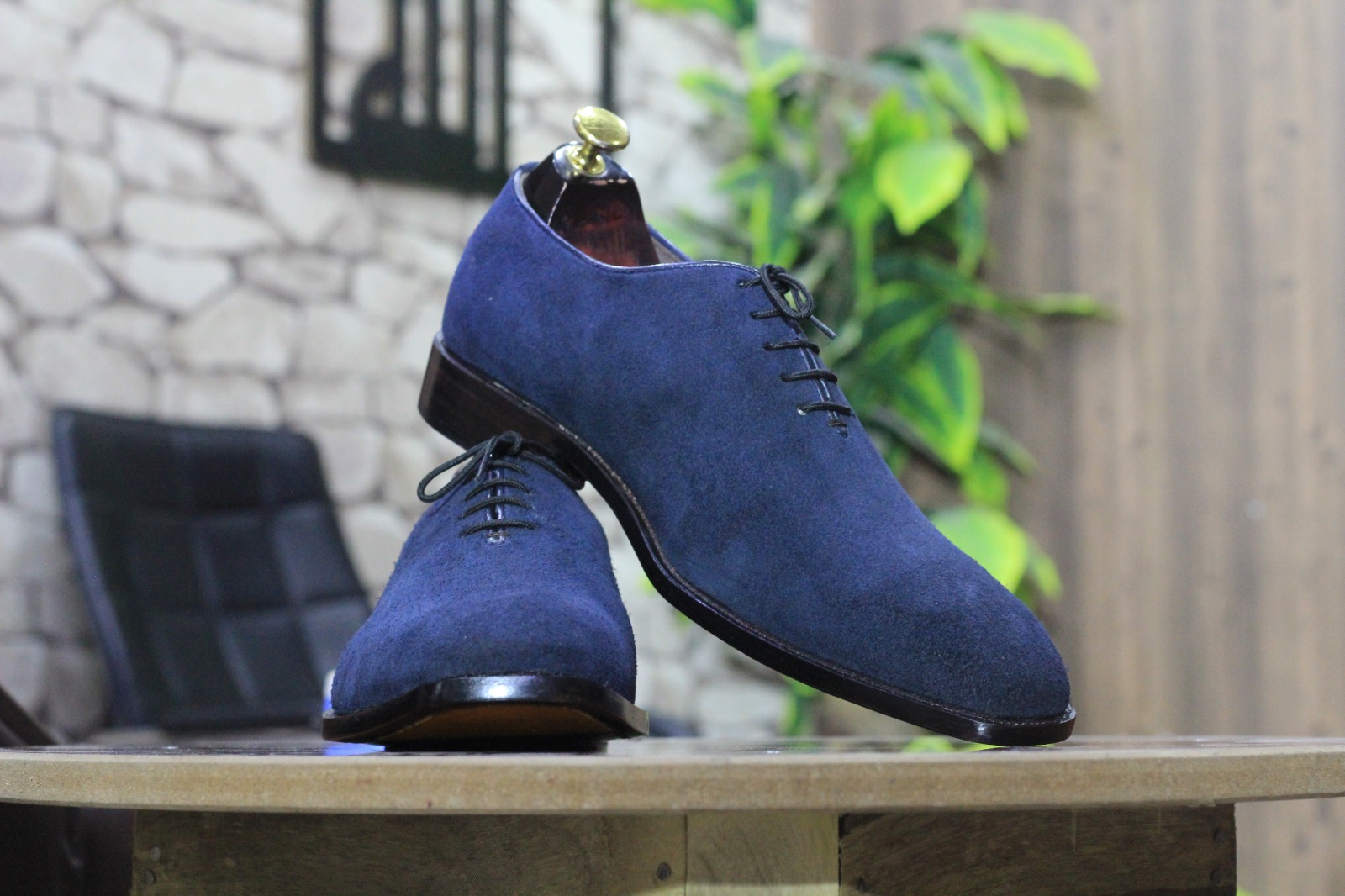 New pure handmade Blue Color Lace Up Style Square Toe Men's Suede Shoes