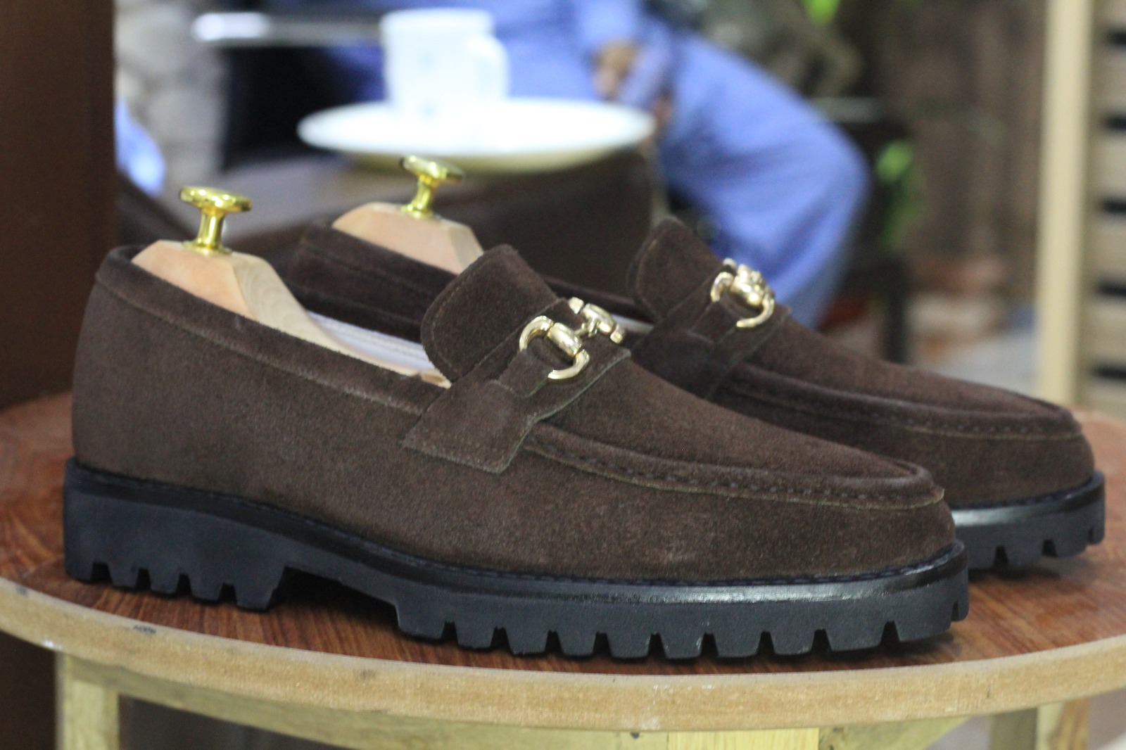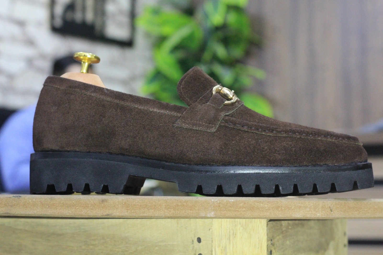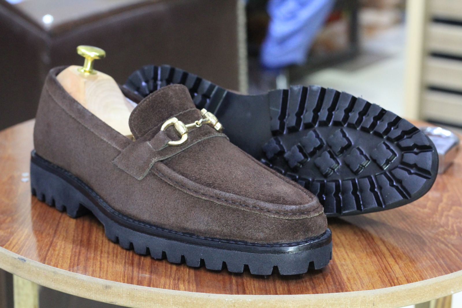 Men's New Rubber Sole Brown Color Horse Bit Style Handmade Suede Loafer Shoes