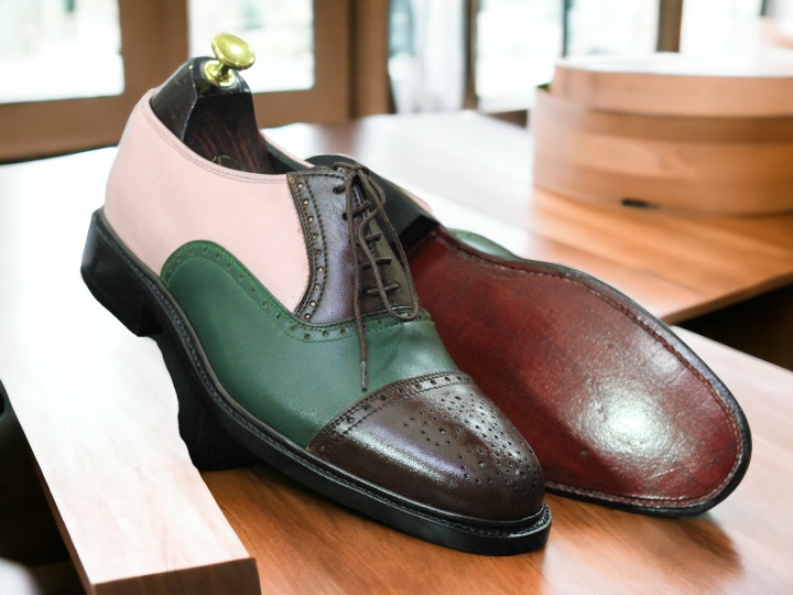 Men's Bespoke Cap Toe Brogue Toe Style Tree Tone Color Pure Handmade Leather Lace Up Shoes