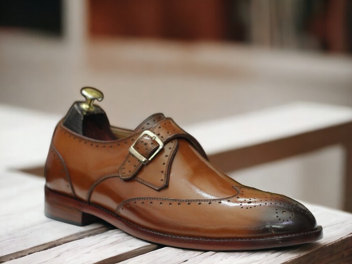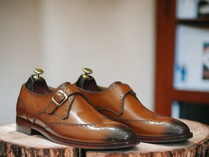 Handmade Men's Brown Leather Shoes ,Brogue Toe Buckle Shoes