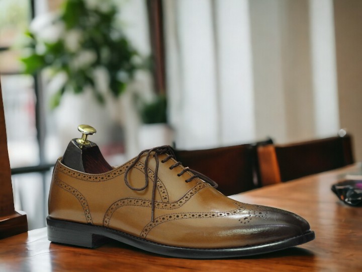 Men's Handmade Two Shaded Brown Color Brogue Toe Lace Up Style Leather Formal Shoes