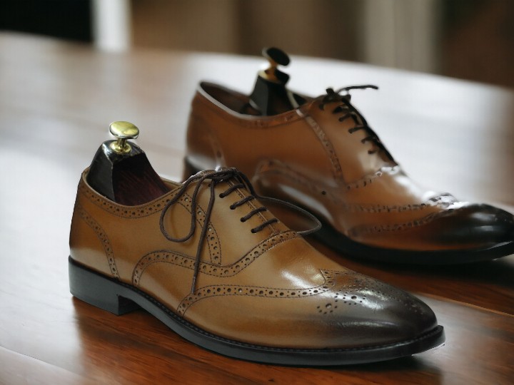 Handmade Men's Two Shaded Brown Leather Shoes ,Lace up Brogue Toe Shoes