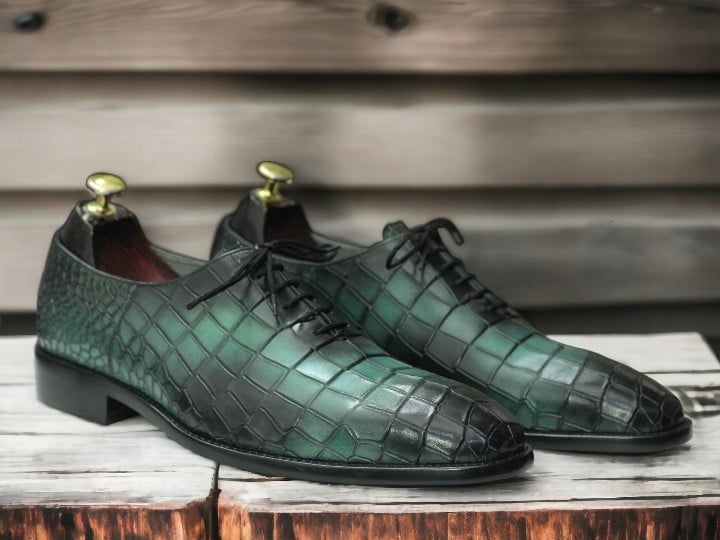 Handmade Men's Two Tone Sea Green Leather Shoes ,Alligator lace up Dress Shoes