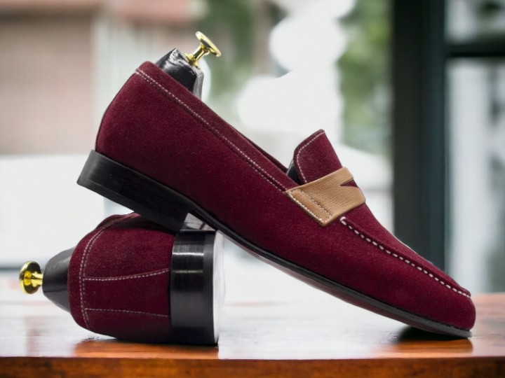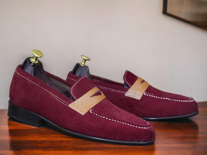 Handmade Men's Burgundy Suede Shoes ,slip on loafer Shoes