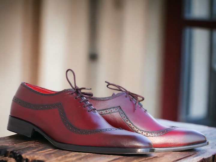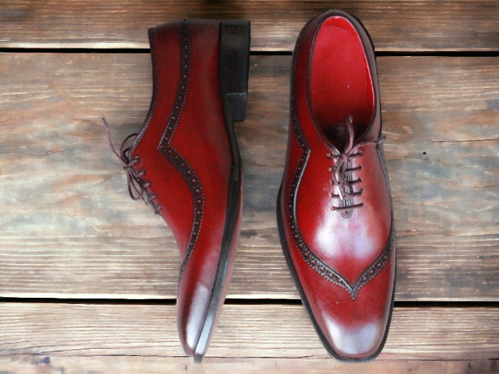 Handmade Men's Burgundy Shoes ,Leather Lace Up Dress Shoes