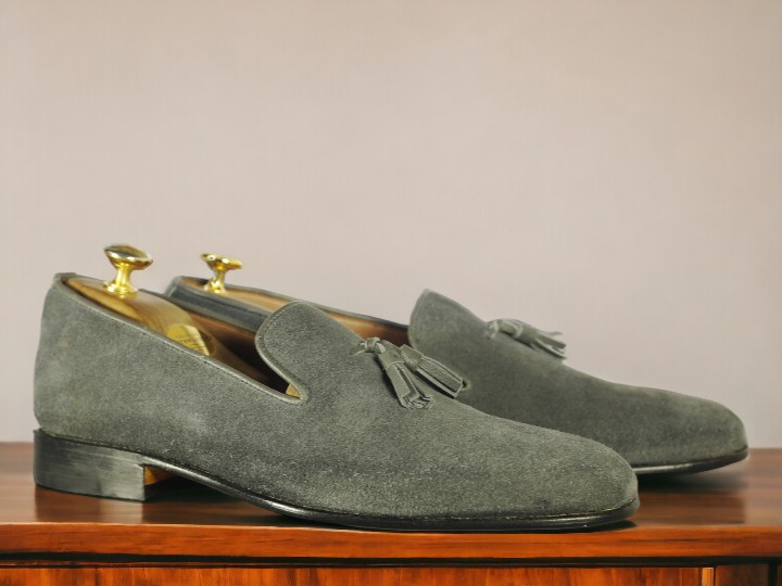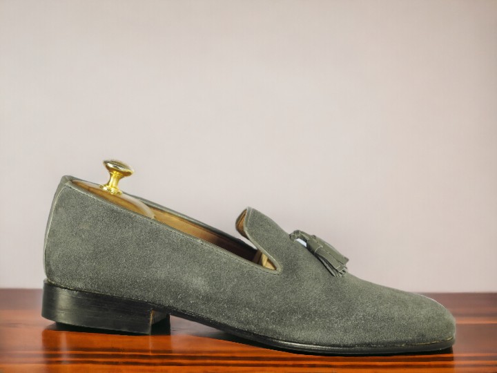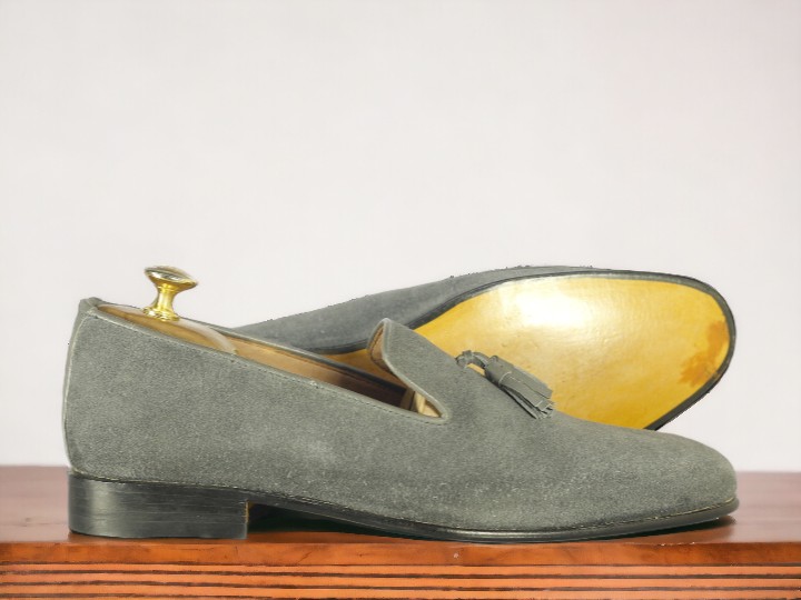 Handmade Men's Gray Suede Loafer Shoes ,Designer Dress Tassel Shoes