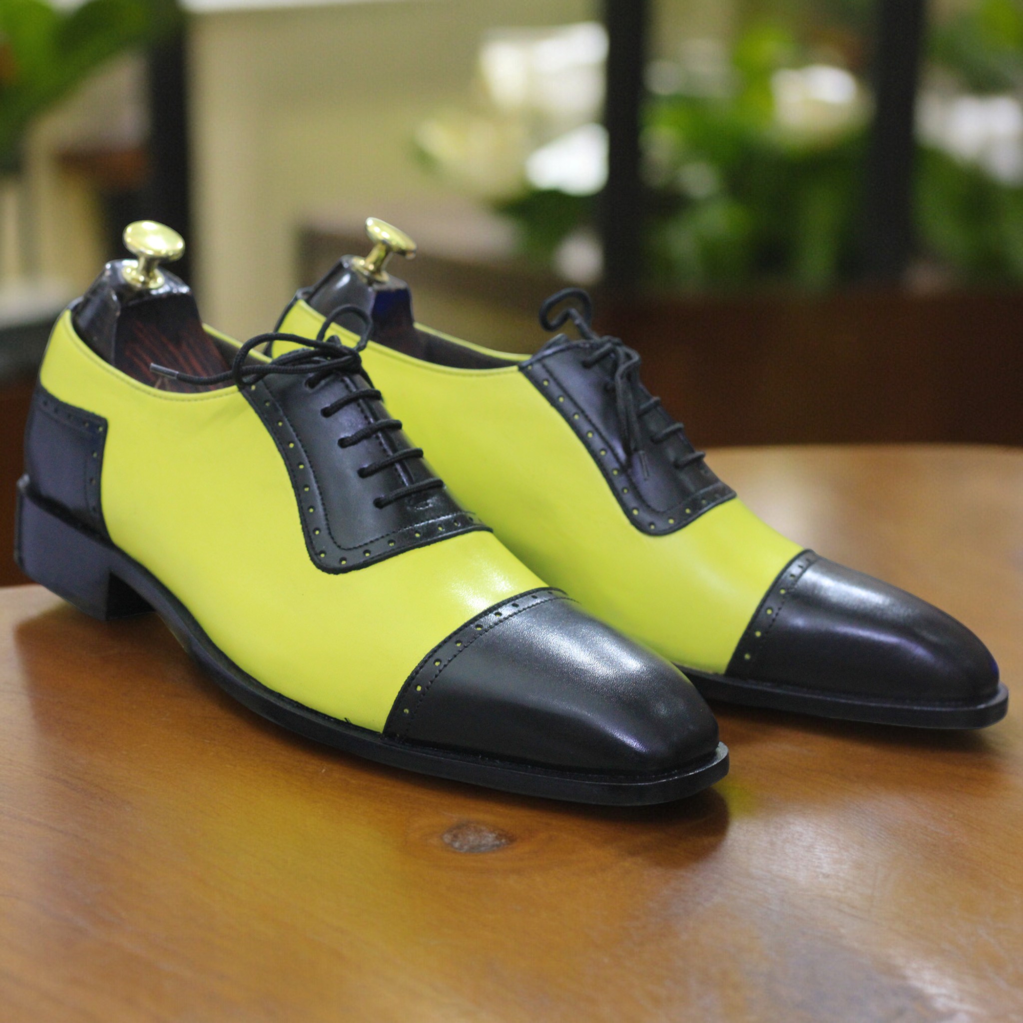 Handmade Men's Black and Sea Green Leather Shoes ,Lace Up Cap Toe Shoes