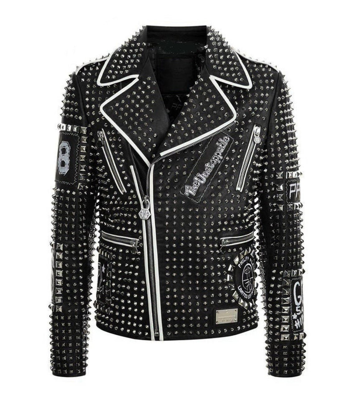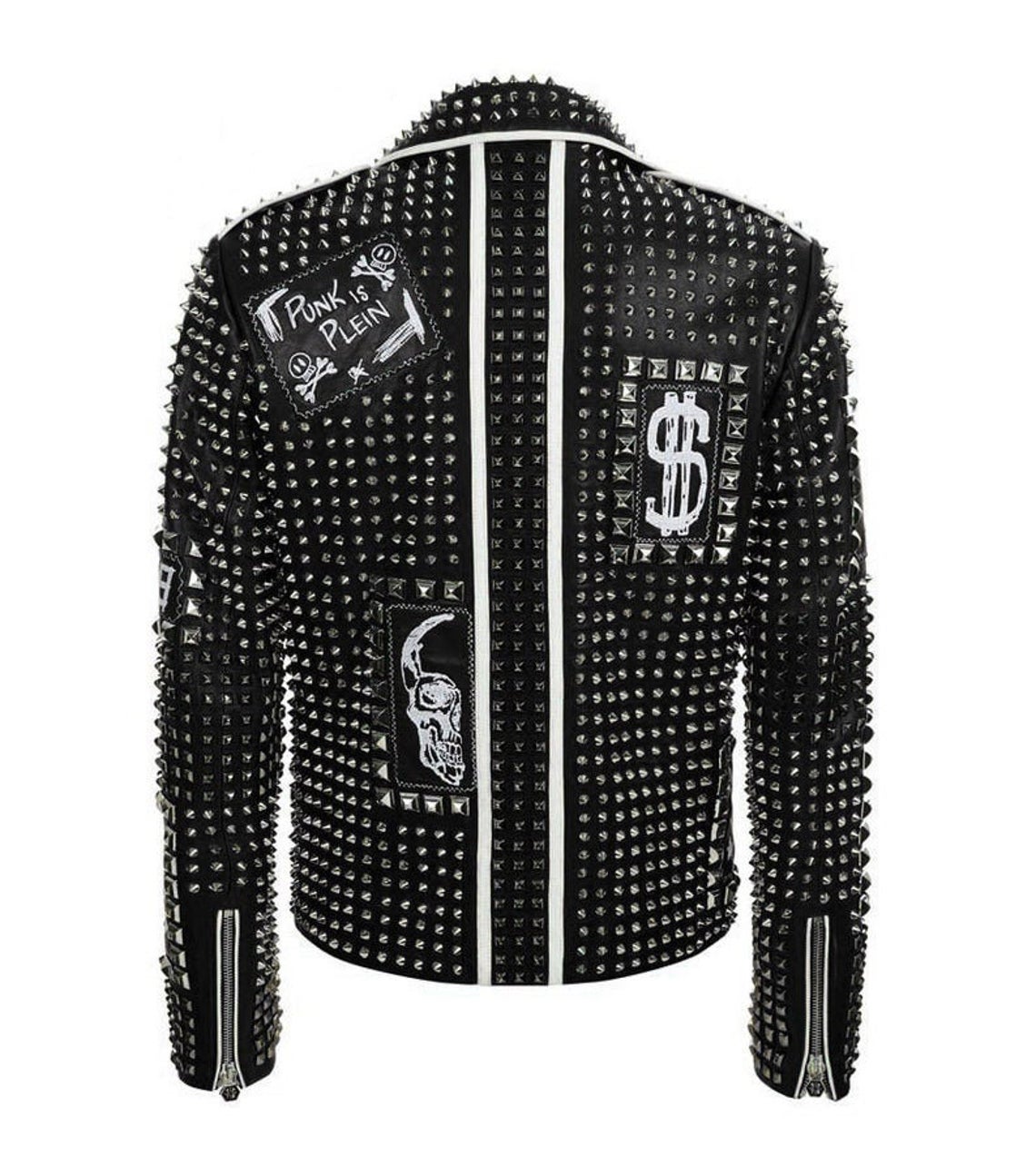 Handmade Men Studded Leather Jacket, Black Punk Silver studded Jacket