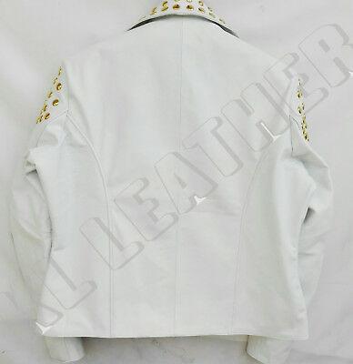 White Philips Plain White Studded Embroidery Patches Leather Jacket Biker Men