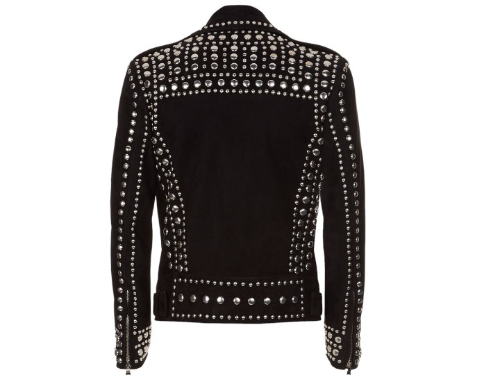 Handmade Black Color Silver Studded Leather Style Men's Zipper Jacket