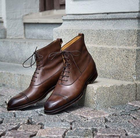 Cap Toe Style Dark Brown Lace Up Ankle High Boot, Men's Party Boot