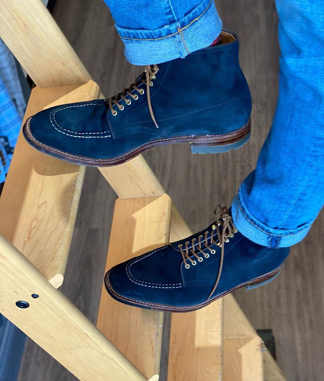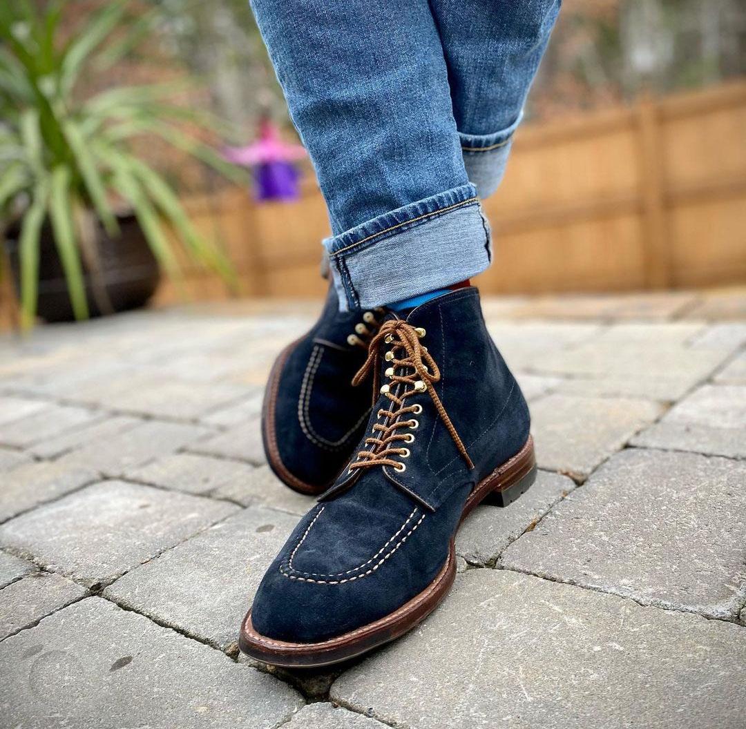 Handmade Men's Navy Blue Suede Stylish Lace Up Formal Ankle Boot
