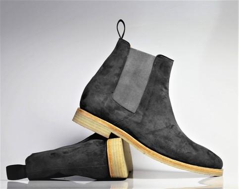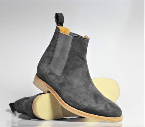Gray Suede Ankle High Fashion Boot, Chelsea Boot For Men's