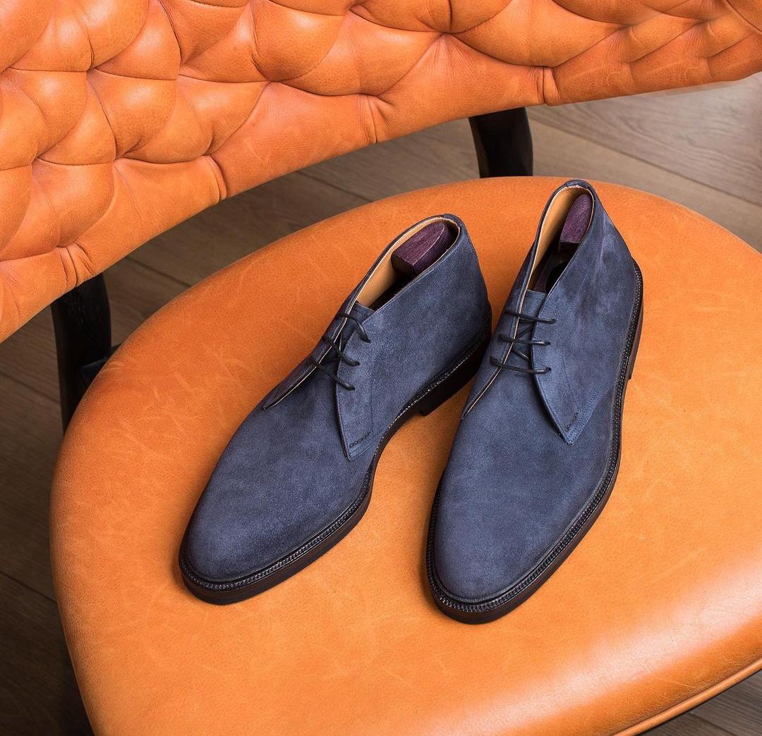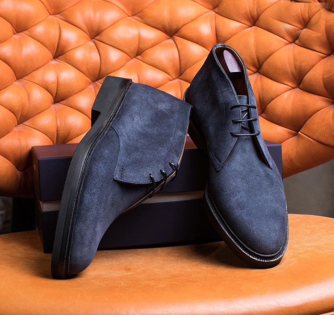Blue Suede Chukka Lace Up Half Ankle Boot For Men's