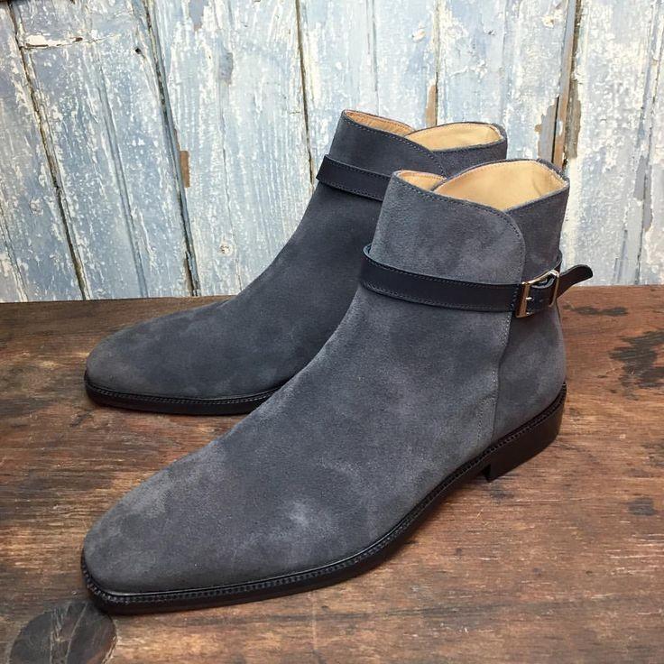 Gray Suede Ankle High Single Monk Strap Boots For Men's