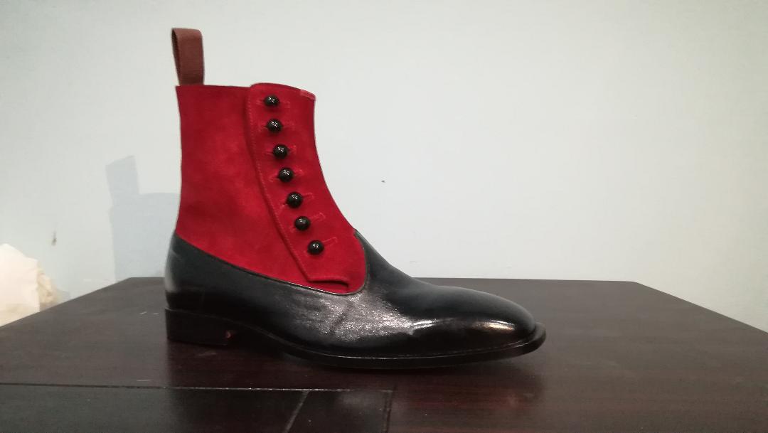Handmade Men's Ankle Boots, Men's Black Burgundy Leather Suede Button Casual Boot