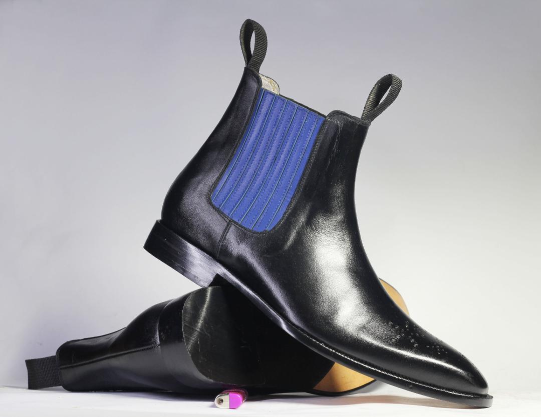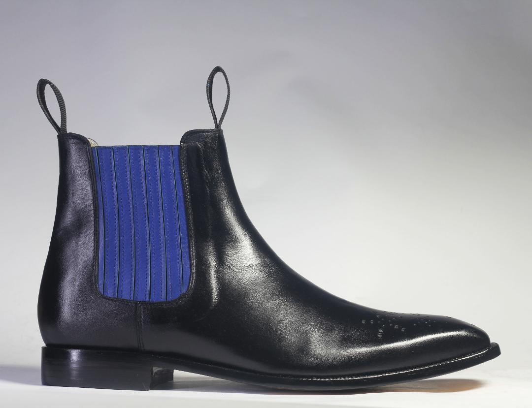 Handmade Black Ankle Chelsea Leather Boot For Men's