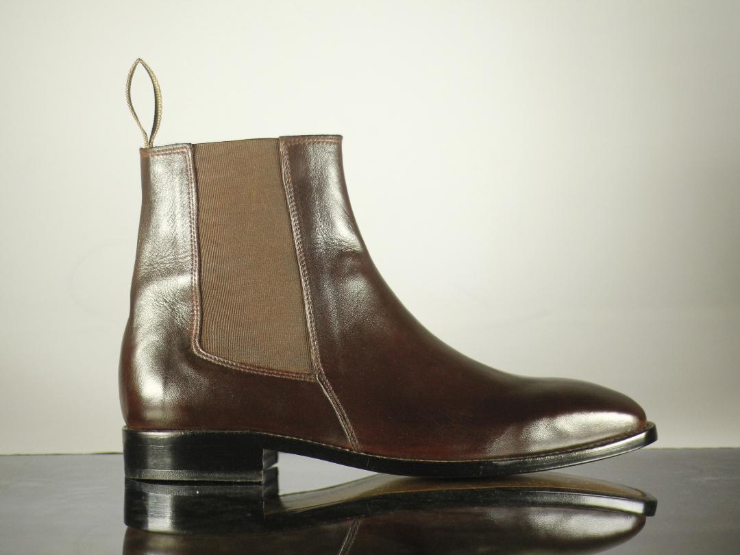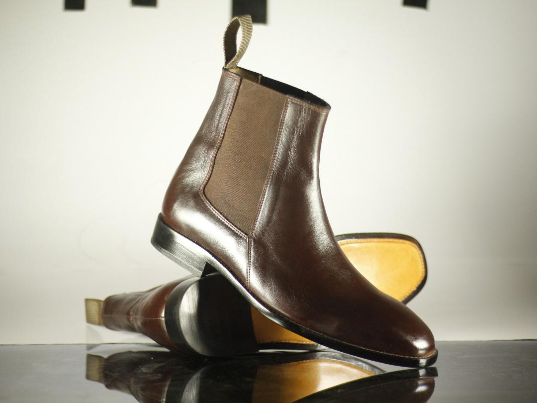 Men Fashion Elegant Brown Leather Boots, Chelsea Boot , Ankle High Boot