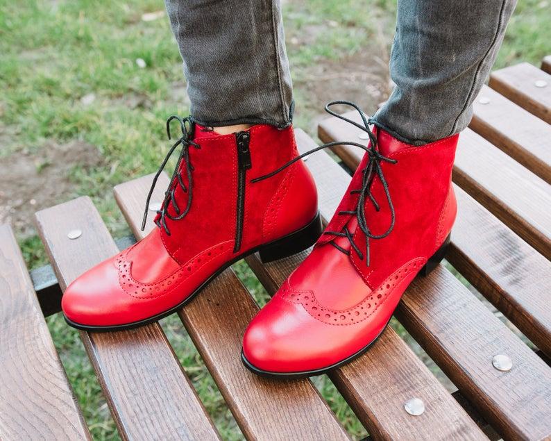 Castaway Long Torch Red Quarter Suede , Wing Tip Good Quantity Real Leather Women High Ankle Boots