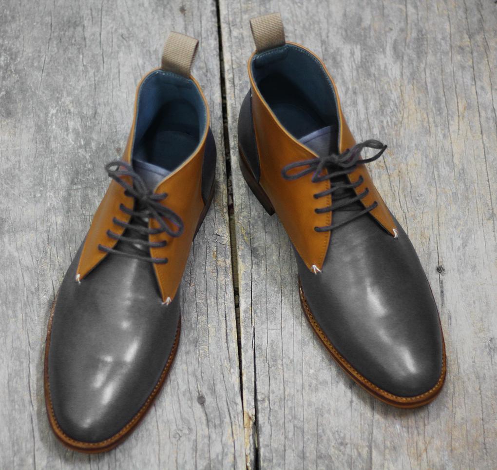 New Handmade Half Ankle Black & Tan Leather Lace Up Boots For Men's
