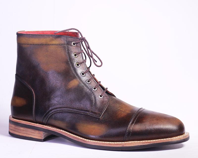 Men's Handmade 2 Tone Ankle High Cap Toe Lace Up Leather Boot